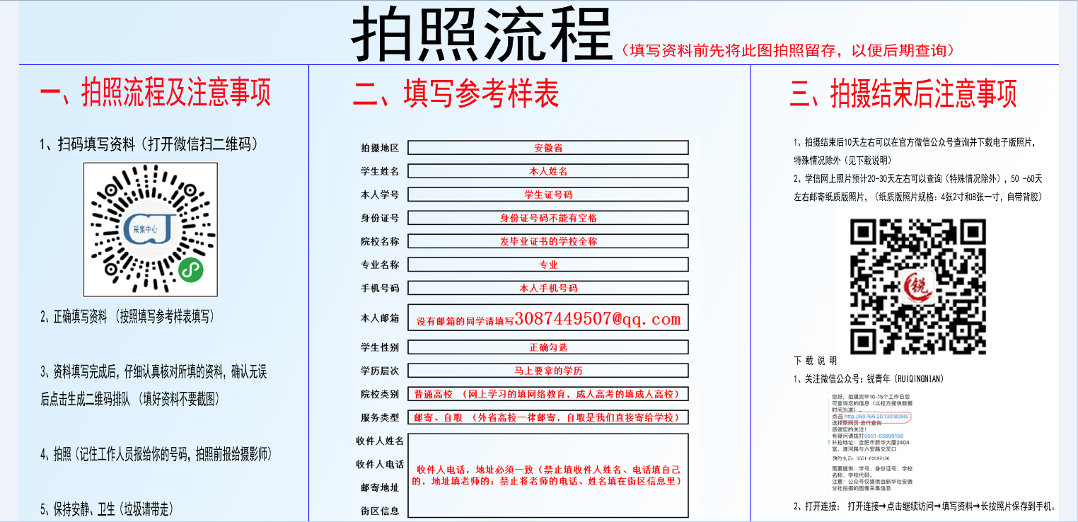 (4)补拍学员需先到教务处填表登记(若来不了,可由班主任代填表登记),拍摄结束10个工作日左右,学生自行从“锐青年”下载电子照片,以姓名+身份证号码命名发给班主任,再由班主任发给鲍亚俊处。