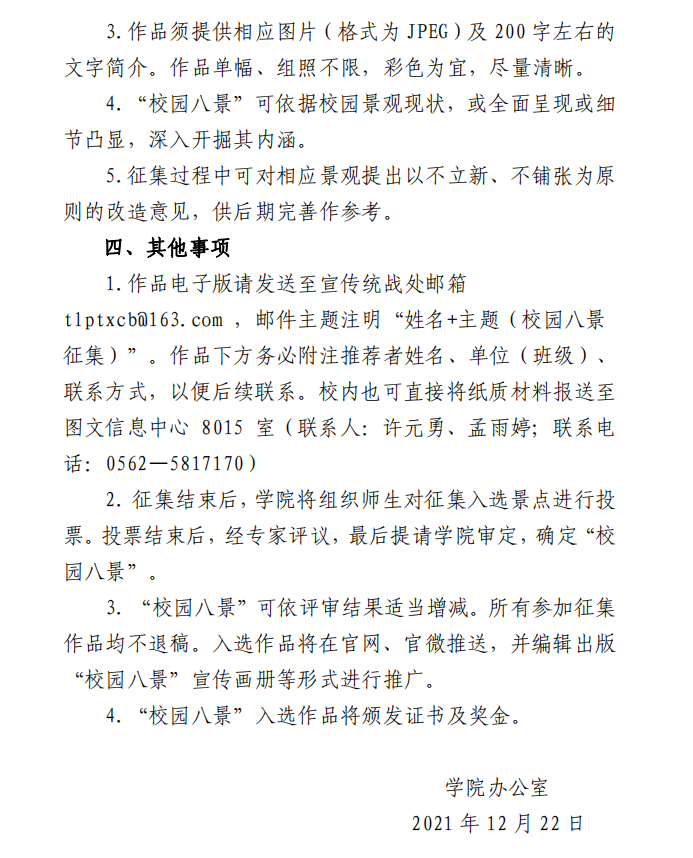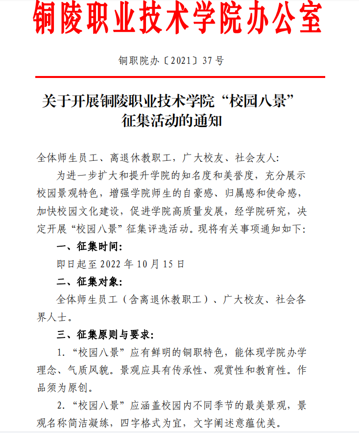 转发职院《关于开展铜陵职业技术学院“校园八景” 征集活动的通知》