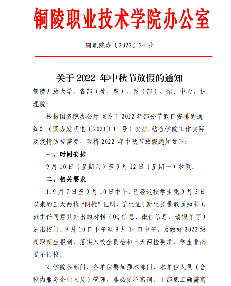 转发学院《关于 2022年中秋节放假的通知》