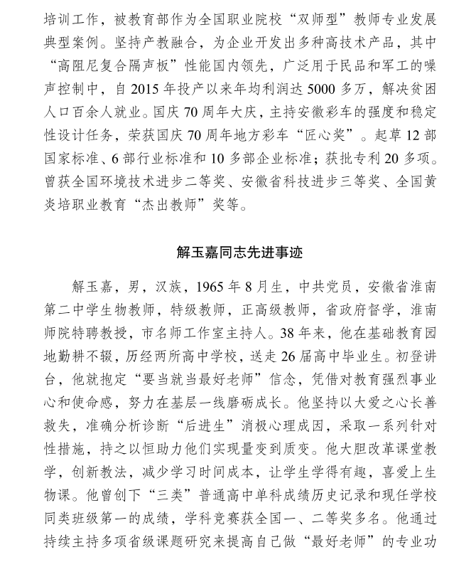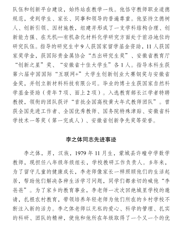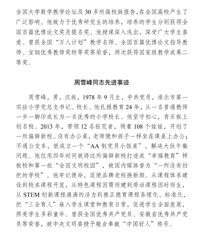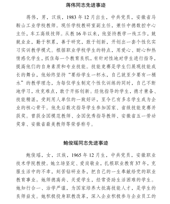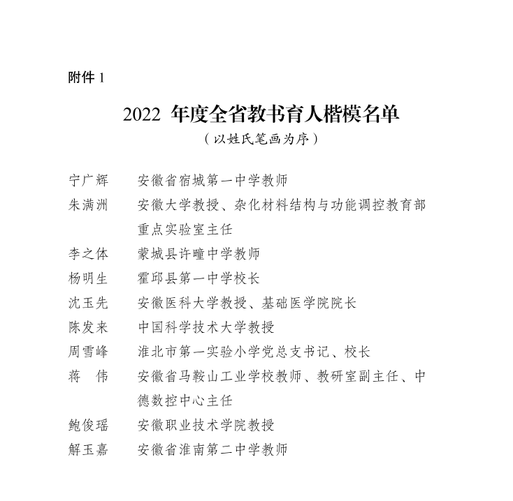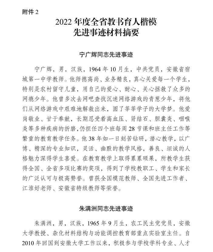 为深入贯彻落实习近平总书记关于教育的重要论述,特别是关于教师队伍建设的重要讲话精神,弘扬人民教师高尚师德,营造尊师重教良好社会风尚,根据《中共安徽省委教育工委安徽省教育厅关于开展向2022年度全省教书育人楷模学习活动的通知》(皖教工委函〔2022〕440号)文件精神,请各总支在第38个教师节前,请全体教职工深入学习2022年度全省教书育人楷模先进事迹,充分发挥先进典型的精神感召力。