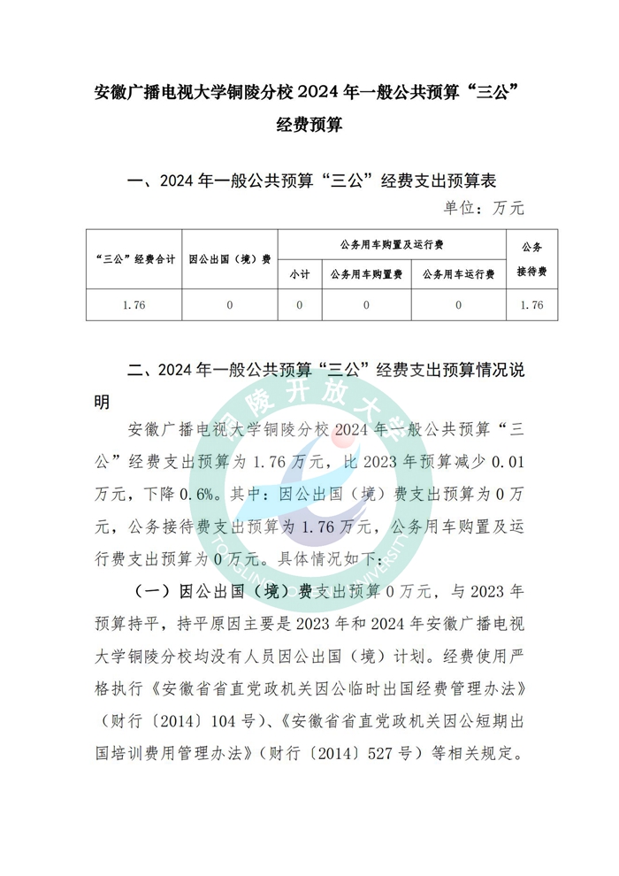 安徽广播电视大学铜陵分校2024年一般公共预算“三公”经费预算