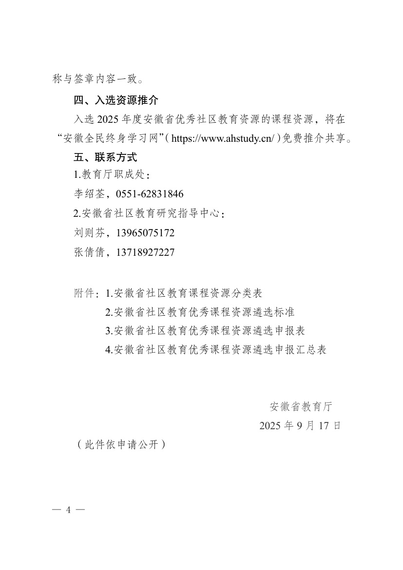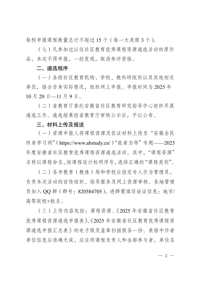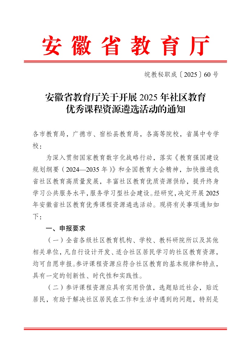 安徽省教育厅关于开展2025年社区教育优秀课程资源遴选活动的通知