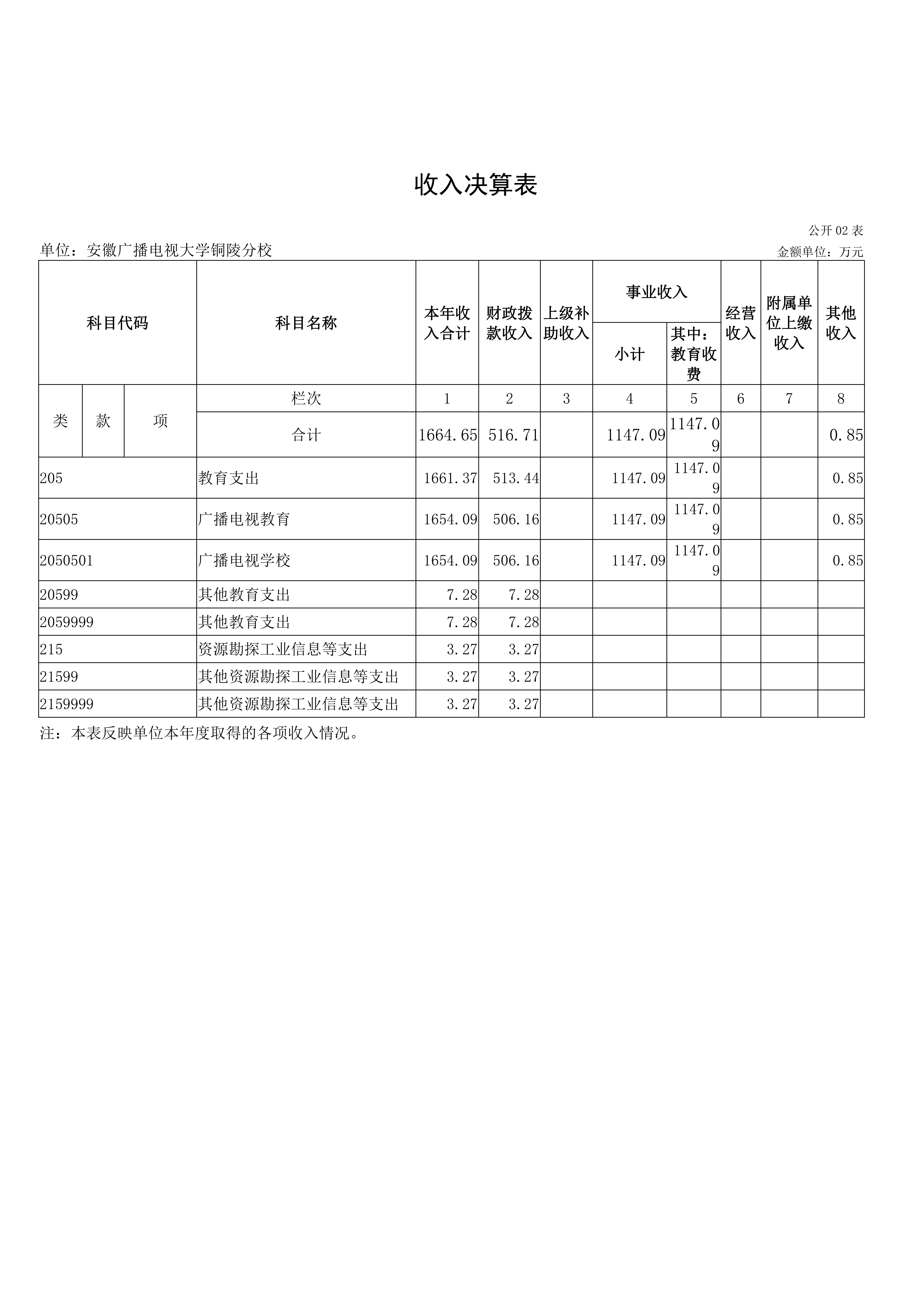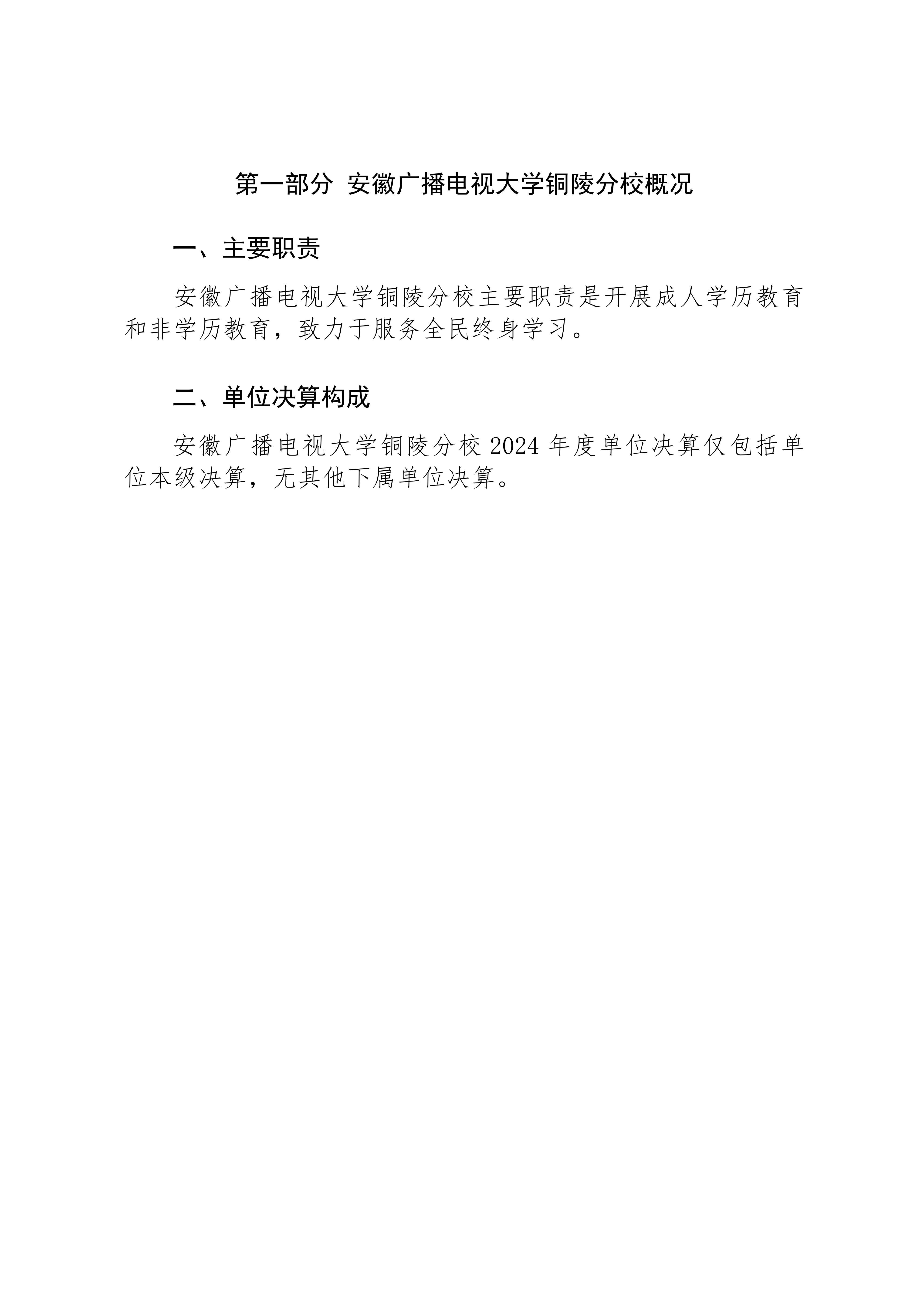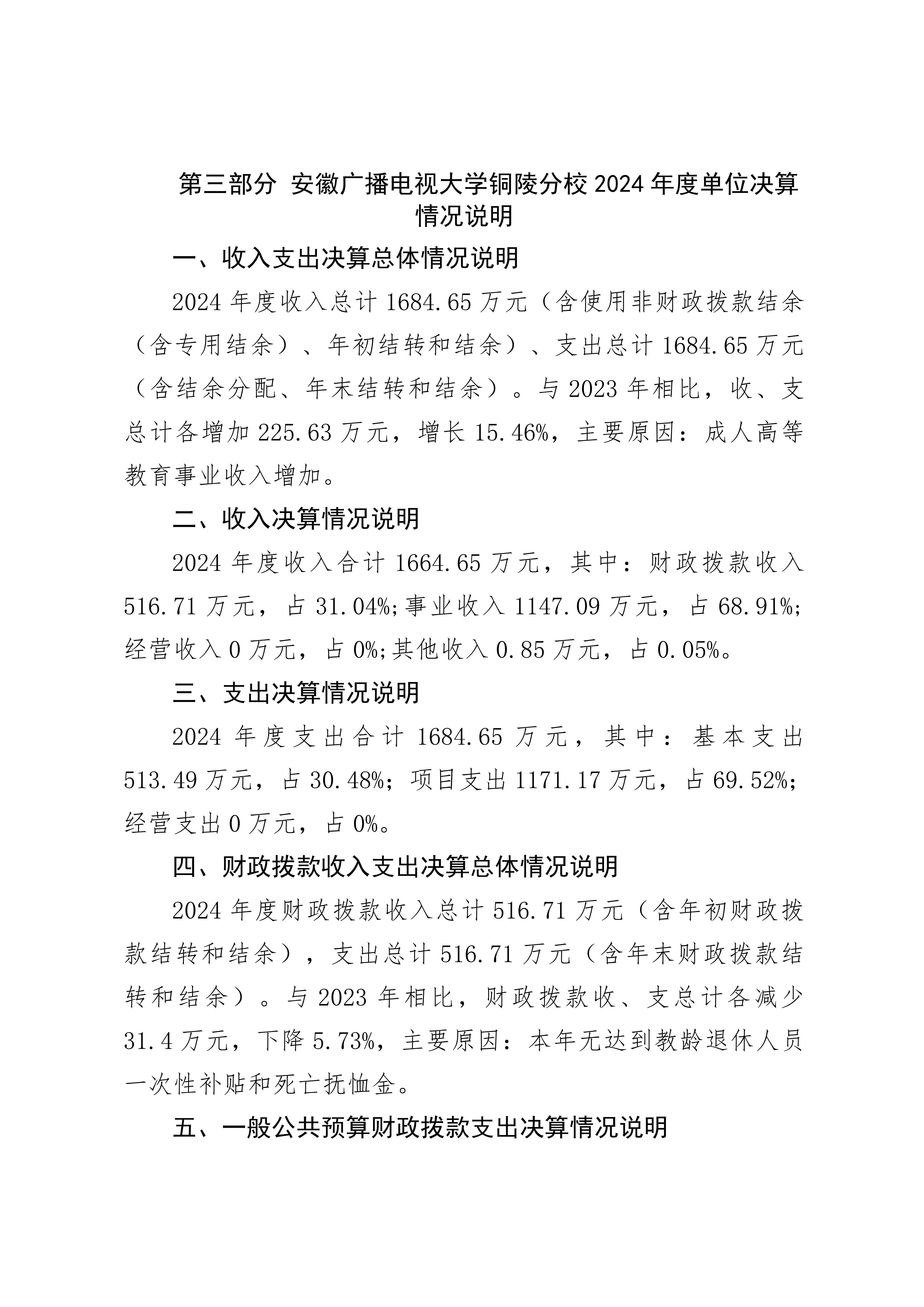 2024年安徽广播电视大学铜陵分校单位决算公开