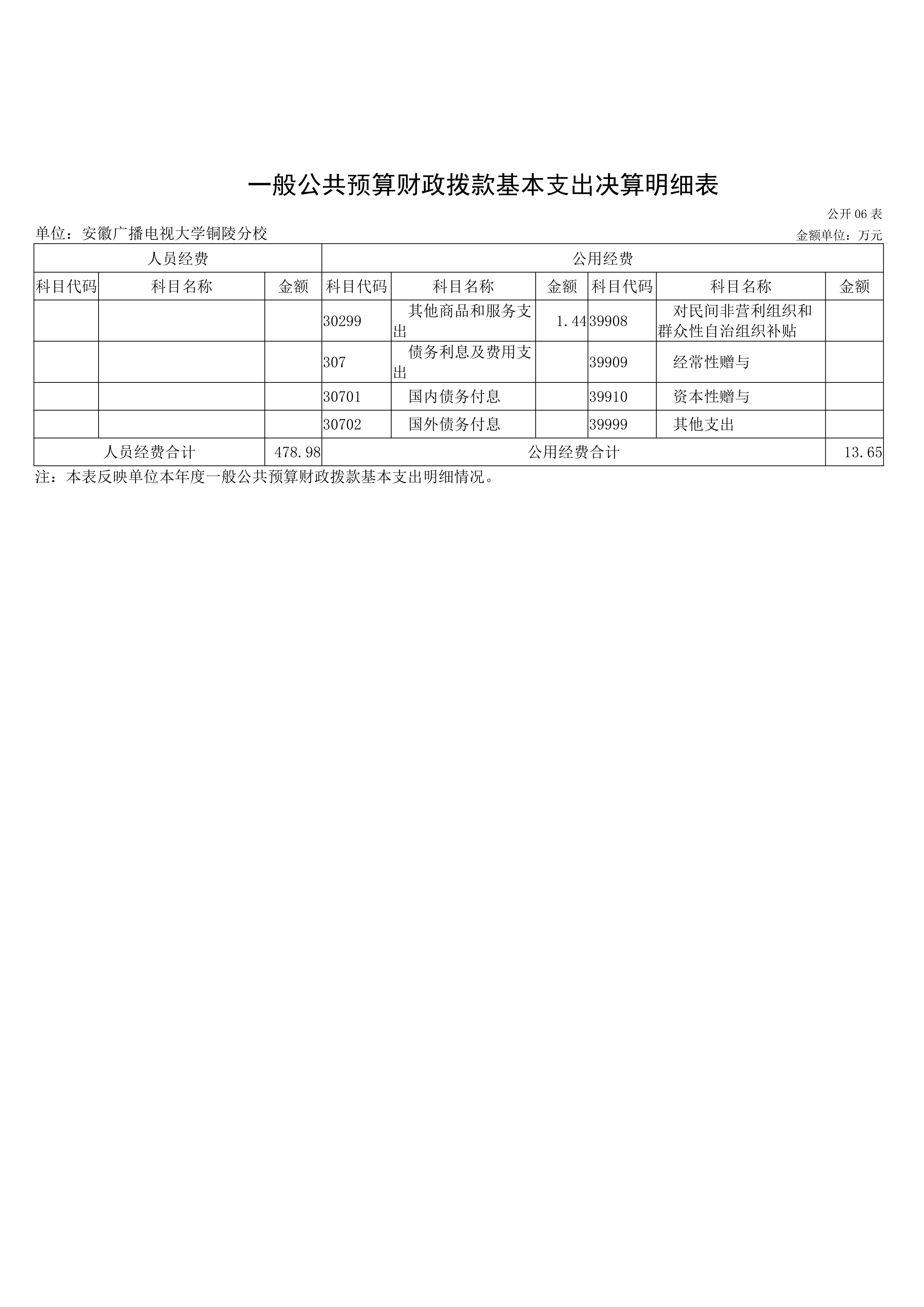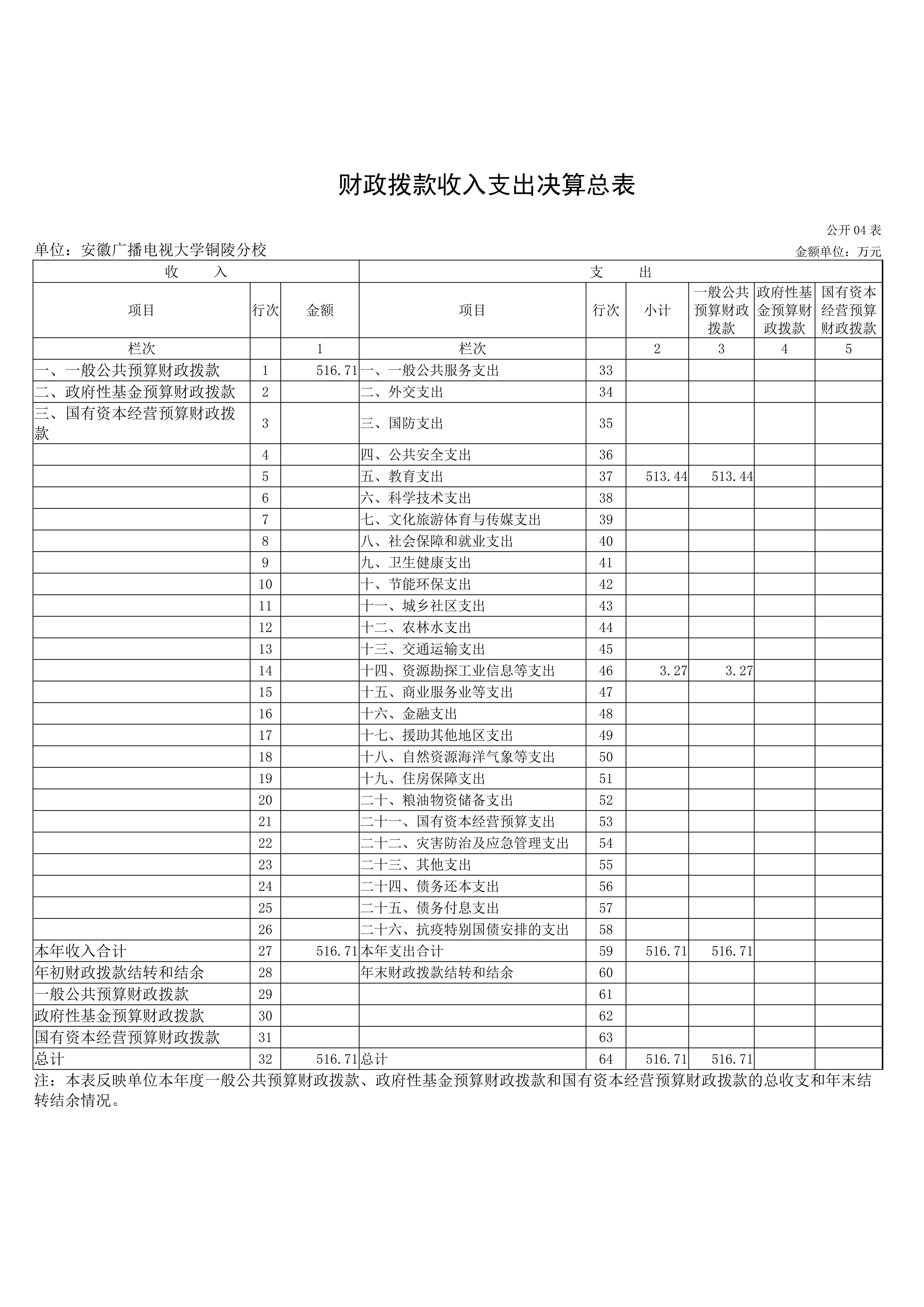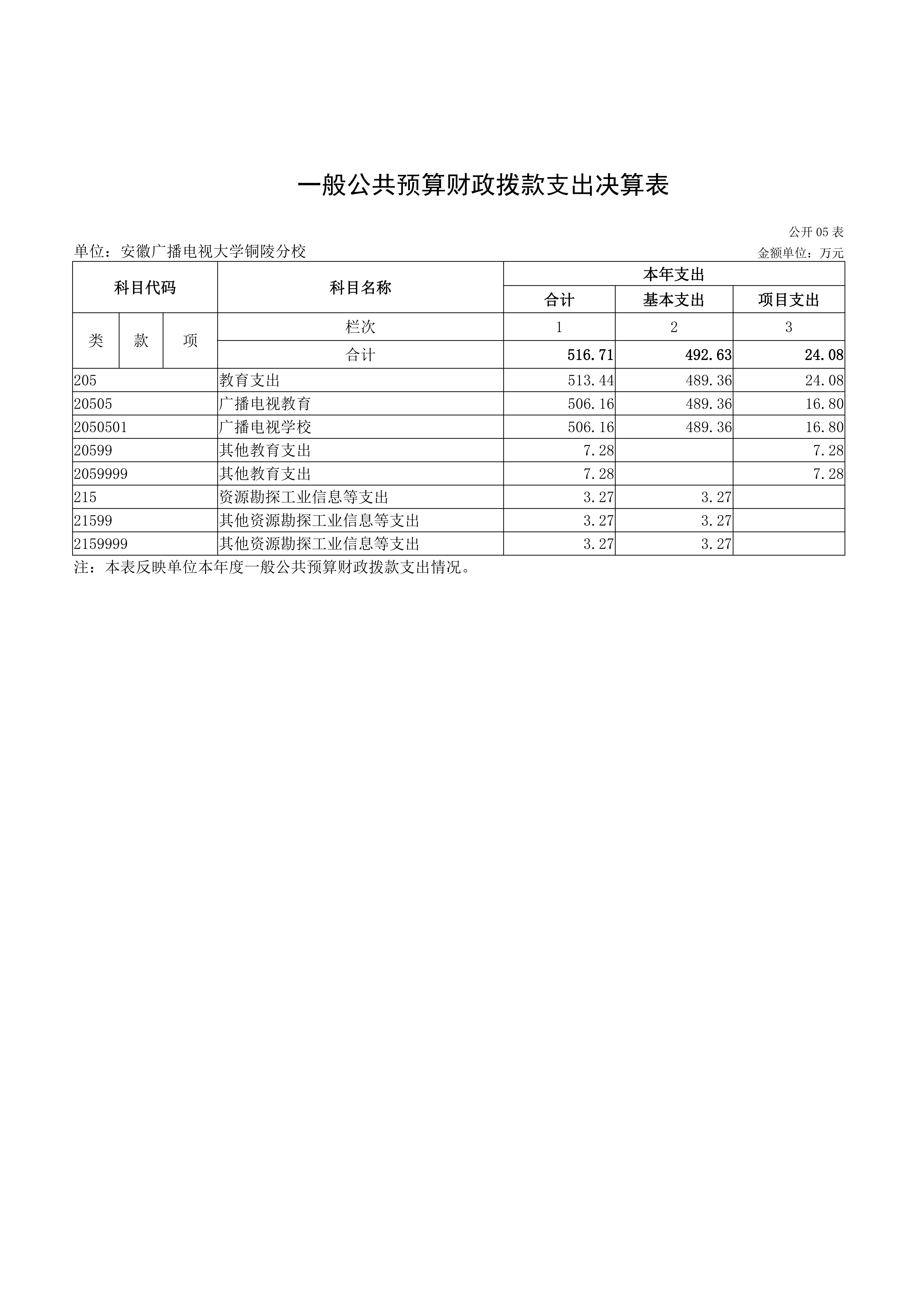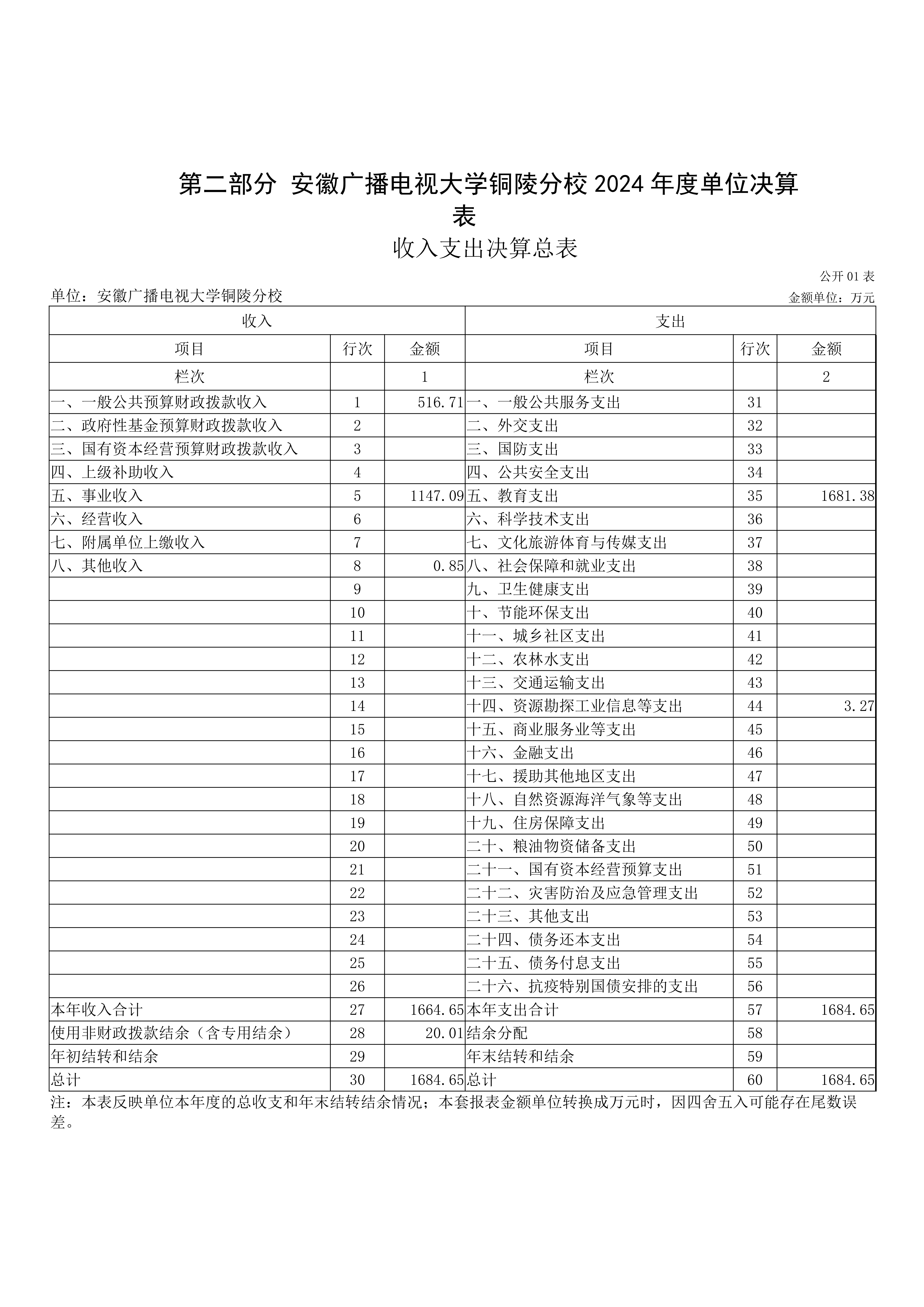 2024年安徽广播电视大学铜陵分校单位决算公开